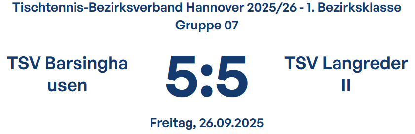 1. Bezirksklasse Herren: Barsinghausen vs Langreder II 5:5