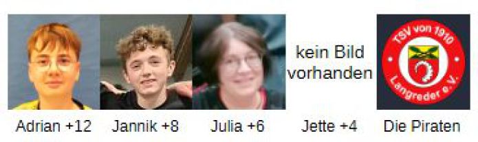 Bei den Damen konnte Julia Pohland ihre Siegesserie auf 6 erhöhen und liegt auf Platz 1. Anke Fiedler verlor leider ein Spiel und ist nicht mehr bei den Unbezwingbaren dabei. Platz 2 gehört Jette Nieschalk, die noch kein weiteren Einsatz für Langreder hatte. Den Verbliebenen in der Liste weiterhin viel Erfolg. Von PB
