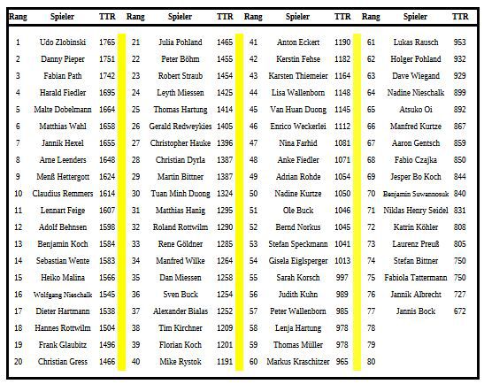 Aktuelle Tischtennis-Rating Werte (TTR)