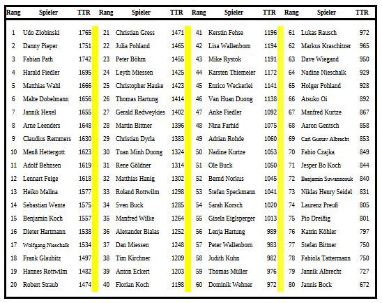 In der 4. Liste konnte Enrico Weckerlei seinen Vorsprung auf 8 Siege ausbauen. Auf seinen Fersen dicht dahinter Sven Buck mit 6 Erfolgen. In Lauerstellung: Ole Buck, Lennart Feige, Thomas Hartung, Stefan Bittner und Jasper Leitritz mit jeweils 4 Siegen. Auch noch im Rennen mit 2 gewonnenen Spielen sind Arne Leenders, Henry Kraus, Carl Gustav Albrecht und leider ohne Bild Theo Mast.