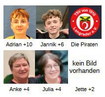 Die Liste ist gewachsen. Bei den Damen konnte Julia Pohland 2 Siege gut machen und steht nun bei +4. Hinzu kam Anke Fiedler, gleichauf mit Jette Nieschalk, beide +2. Bei den Herren gesellte sich zu Lennart Feige und Alf Behnsen auch Matthias Hanig. Alle liegen mit 2 Siegen gleich auf. Bei der Jugend führen nun Jasper Leitritz und Niklas Henry Seidel mit 4 Siegen vor Adrian Rohde mit 2.