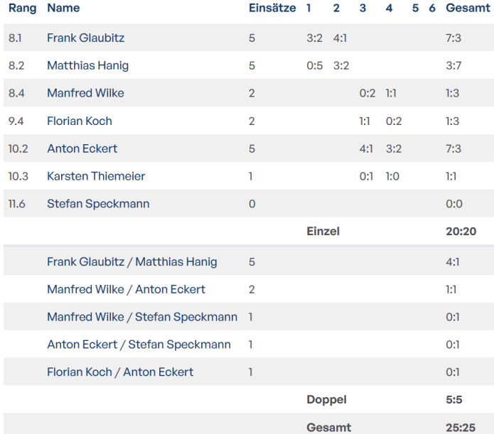 Aktuelle TTR Werte im Verein!