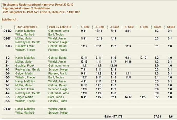 Update zum Traditionspokal!