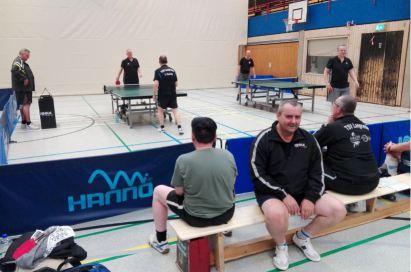 Spiel 1 gegen den "Macher" aus Badenstedt Reinhard Otto gewinnt Tom 3:1. Gegen Andreas Bock vom Nachbarn Barsinghausen muss er in den 5. Satz, verliert dort leider 8:11.